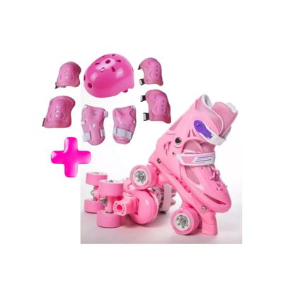 Patines Ajustables mas Kit con Casco 4 Ruedas Niña Rosa Talla XS27-30
