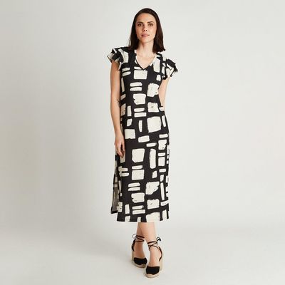 Vestido Estampado Manga Corta Escote V