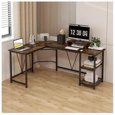 Escritorio Esquinero Forma LT Estantes Gamer 72x1x50 CM Negro Negro / 20X20X20 CM / MDF