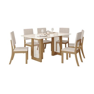 Comedor Decocasa Kalina 6 Sillas Off White Castaño