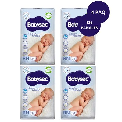 Pack X4 Pañales Babysec Recien Nacido