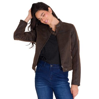 Chaqueta Casual Waxed Moto Mujer Café Oscura | Falabella