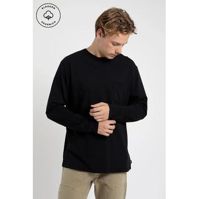 Polera manga larga hombre Bolsillo negro - Algodón orgánico | Falabella