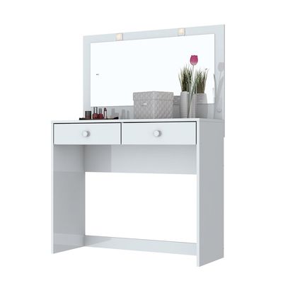 Genérico - Tocador De Madera Con Espejo 2 Cajones Blanco