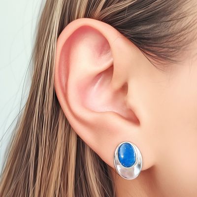 Aros Lapislázuli Ovalado Cóncavo Plata Fina 925 | Falabella