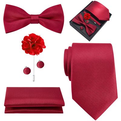 Set Corbata Hombre Seda con Pañuelo Colleras Modelos Un Tono En Caja