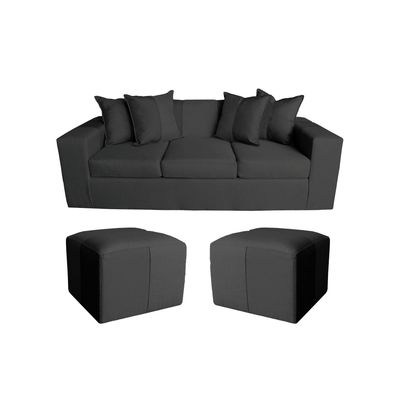 Genérico - Sofa + 2 Puff Benjamin Gris/Negro