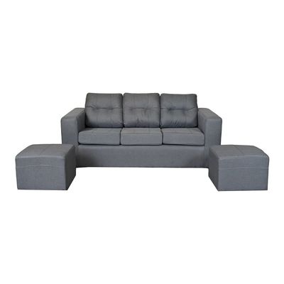Sofá Nize 3 Cuerpos + 2 Pouf Tela Gris | Falabella