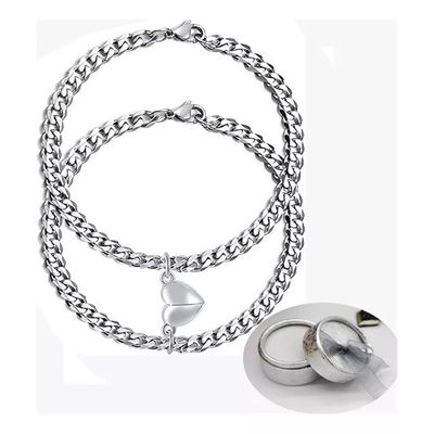 Genérico - Pulseras Para Parejas Con Imán, Corazón, Regalo De Amor, Color Plata
