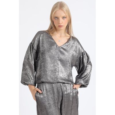 Bluson Amplio Folia Metalizada, Gris Liola