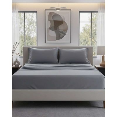 JUEGO DE SABANAS 100% ALGODÓN 200 HILOS GRIS LISAS KING
