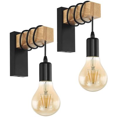2 Unidades lámpara pared madera estilo moderno E27 Negro | Falabella
