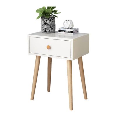 Velador Top Living Tromso Con Cajón Blanco y Madera