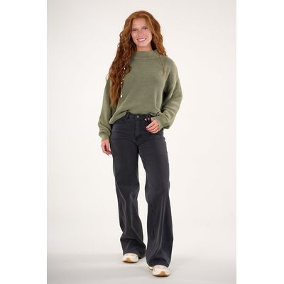 Pantalon Denim wide leg Negro VW4723 Mujer Polemic