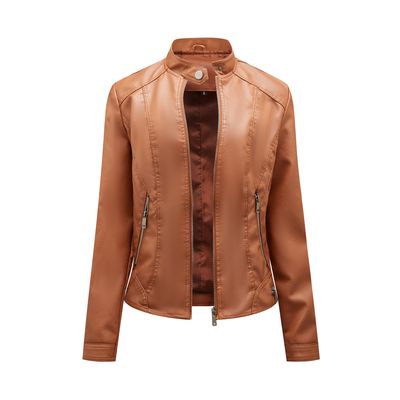 Chaqueta de PU con cuello alto para mujer - Café Claro | Falabella
