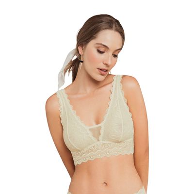 Bralette triangular en tul y encaje elástico en base del busto 011971 Marfil | Falabella
