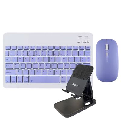 Kit Teclado-Mouse Inalámbrico con Soporte Tablet-Teléfono Lila | Falabella