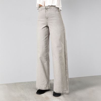 Pantalón Pretina Ajustada Gris Straight Slim Mujer | Falabella