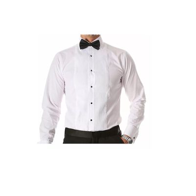 Camisa blanca plisada cuello paloma para novio y otros eventos