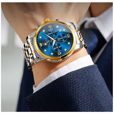 Reloj Lujo para Hombre Diseño Azul Real Acero Inoxidable Bicolor Resistencia al agua 30m | Falabella