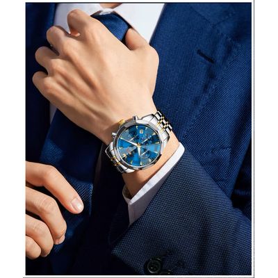 OLEVS-Reloj de pulsera de cuarzo para hombre, cronógrafo luminoso de acero inoxidable, fase lunar, a la moda, nuevo, 2900