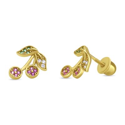 Aros de Cereza con Circones de Plata 925 enchapados en Oro 18k | Falabella