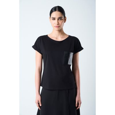 Vélez Camiseta Manga Corta Para Mujer Bolsillo Cuero Negro | Falabella