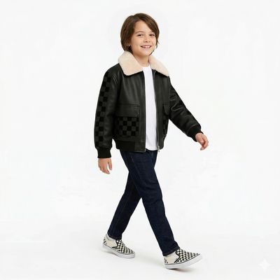 Cazadora De Piel Con Cuello Afelpado Y Grandes Bolsillos | Falabella