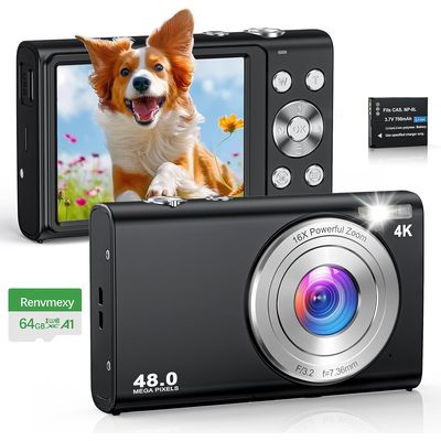 Cámara Digital Negra 4K 48MP Profesional Zoom 16X + 64GB | Falabella