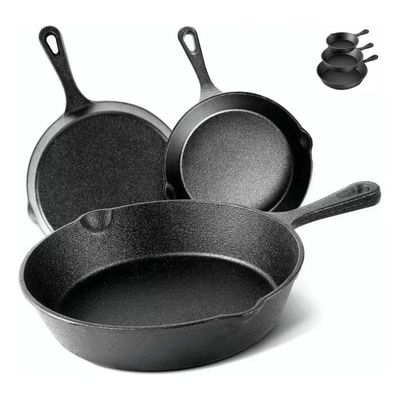 Genérico - Juego De Sartenes De Hierro Fundido, 3 Piezas, Cukin, Negro