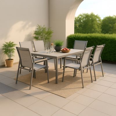 Juego Comedor Terraza 6 Personas Mesa 180X90Cm Beige Northwest