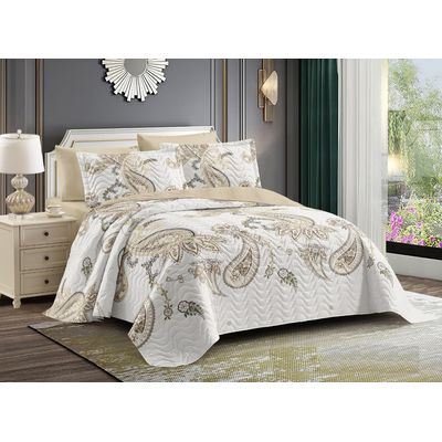 CUBRECAMA KING BLANCO FLOR MARRON ELEGANTE DELGADO DE VERANO TF | Falabella
