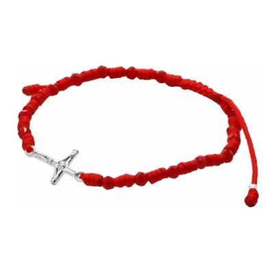 Pulsera Cruz Cristo Plata Hilo Rojo Con Cristales Rojos | Falabella