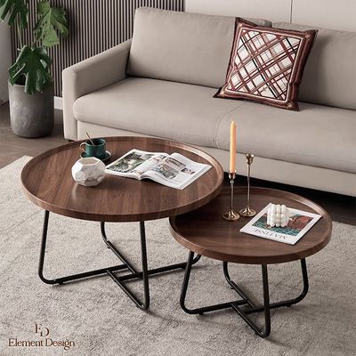 Set de 2 Mesas de Centro Nido Redondas 70+50 CM con Patas Metálicas | Falabella