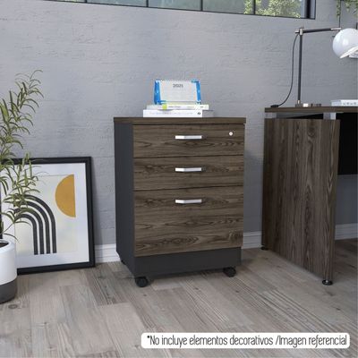 Cajonera Home Office 3 Cajones Con Ruedas Negro Y Coñac | Falabella
