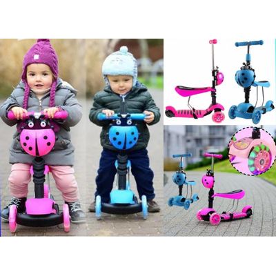 Click Ventas - Scooter Monopatín 5 En 1 Ajustable Niño Chinita Led Rosado