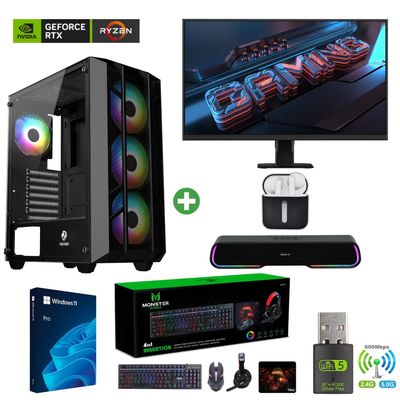 Pc AMD Ryzen 7 5700X - 32GB - RX 7600 - 2TB - (Monitor 27"" + Parlante + HP) PRO
