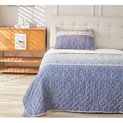 Cubrecama Quilt Sherpa Estampado King Azul | Falabella