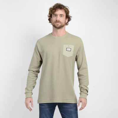Polera Manga Larga Waffle Tech Bolsillo Parche