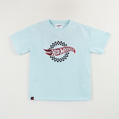Polera Manga Corta Niño Celeste Logo Hot Wheels