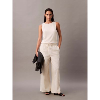 Pantalón Lino con Cintura Elástica Beige Calvin Klein