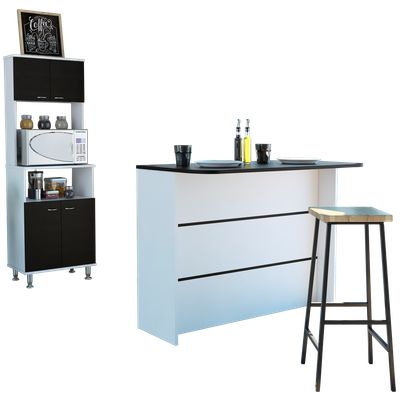 Combo Isla De Cocina + Mueble Microondas 4 Puertas Blanco Y Wengue | Falabella