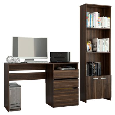 Combo Escritorio + Biblioteca 2 Puertas 4 Niveles Café Oscuro | Falabella