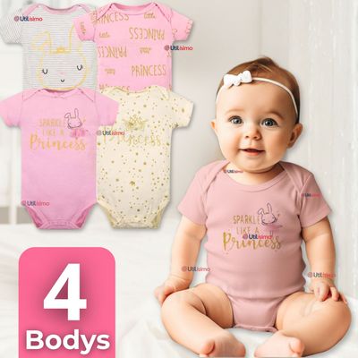 Pack 4 Bodys Manga Corta 100% Algodón Sparkle Like a Princess | Falabella