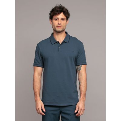 Polo de Algodón Interlock Azul Calvin Klein