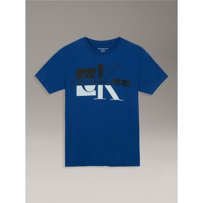 Polera Niño De Manga Corta Monograma Azul Calvin Klein