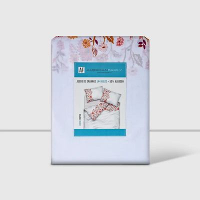 Juego de Sábanas American Family 1 Plaza 144 Hilos Tropico Coral