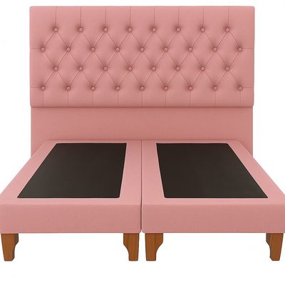 Ethan Desing - Cama 2 Plaza Capitoné + Respaldo 2P Capitone Palo Rosa + Colchón 2P Mery Desing
