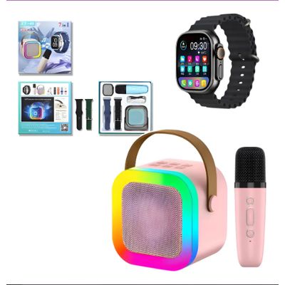 Combo Mini Parlante Altavoz Y Micrófono + Reloj Smartwatch