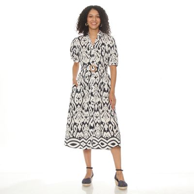 Vestido Manga Corta Estampado Escote V con Cinturón
